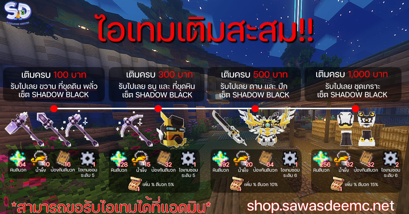 ระบบร้านค้าออนไลน์สำหรับเซิร์ฟเวอร์ SawasdeeShop ซื้อผ่านเว็บไซต์ได้รับของในเซิร์ฟทันที!